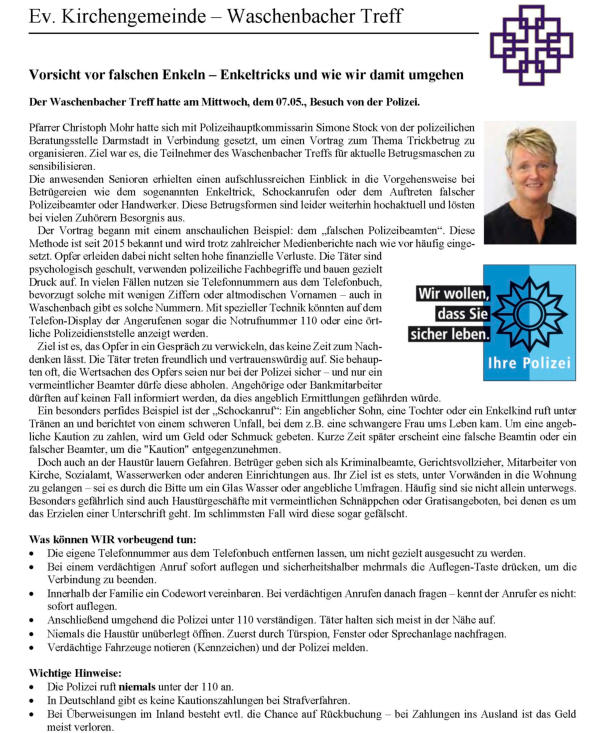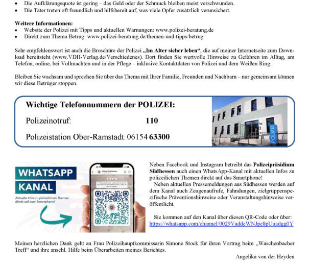 Der ehemalige Polizeibeamte Charly Braun leitetedie ersten Schritte zur Gründung des Senioren-theaters „Roßdörfer Spätlese“ ein. Sie spezialisierten sich auf das Programm "Vorbeugen, Schützen, Beraten" welches in Zusammenarbeit mit der Polizei aufgeführt wird. Hier geht es um ein Aufklärungsprogramm, besonders für ältere Mitbürger, um diese vor Gaunern, Dieben und Betrügern zu schützen.
